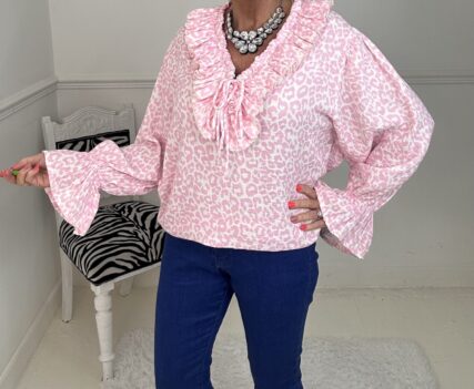 PRETTY PINK FRILL LEOPARD FRILL TOP