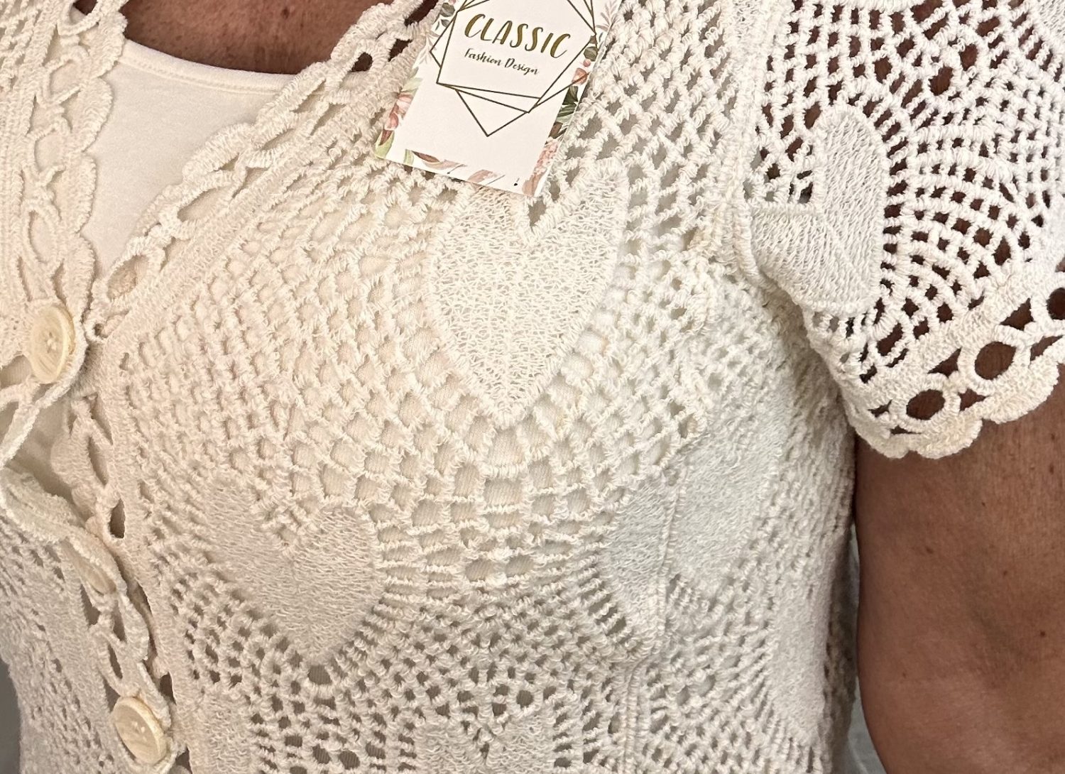 PRETTY BEIGE HEART CROCHET CARDI/TOP