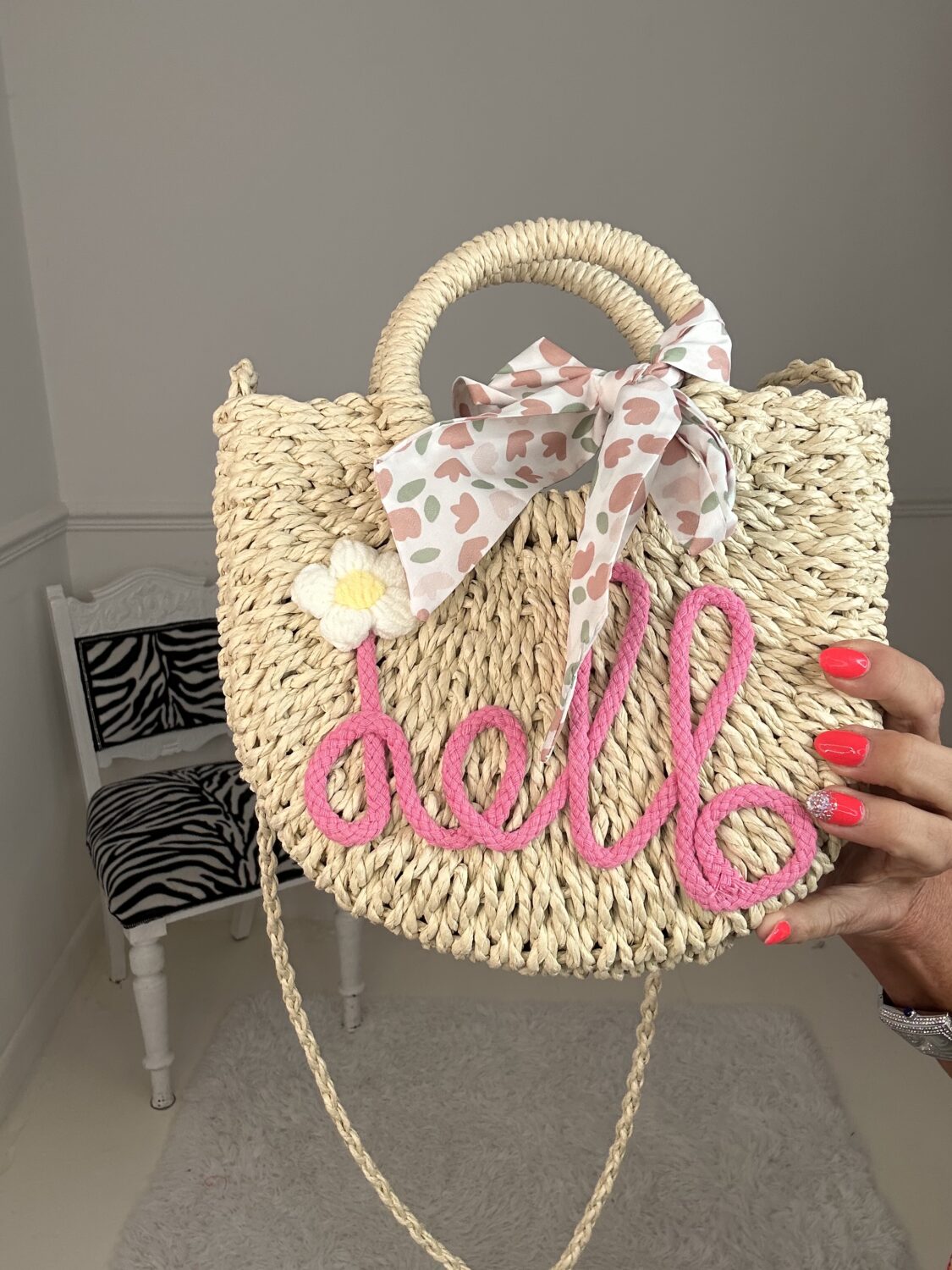 SMALL PRETTY STRAW BAG WITH LONGER STRAP TOO